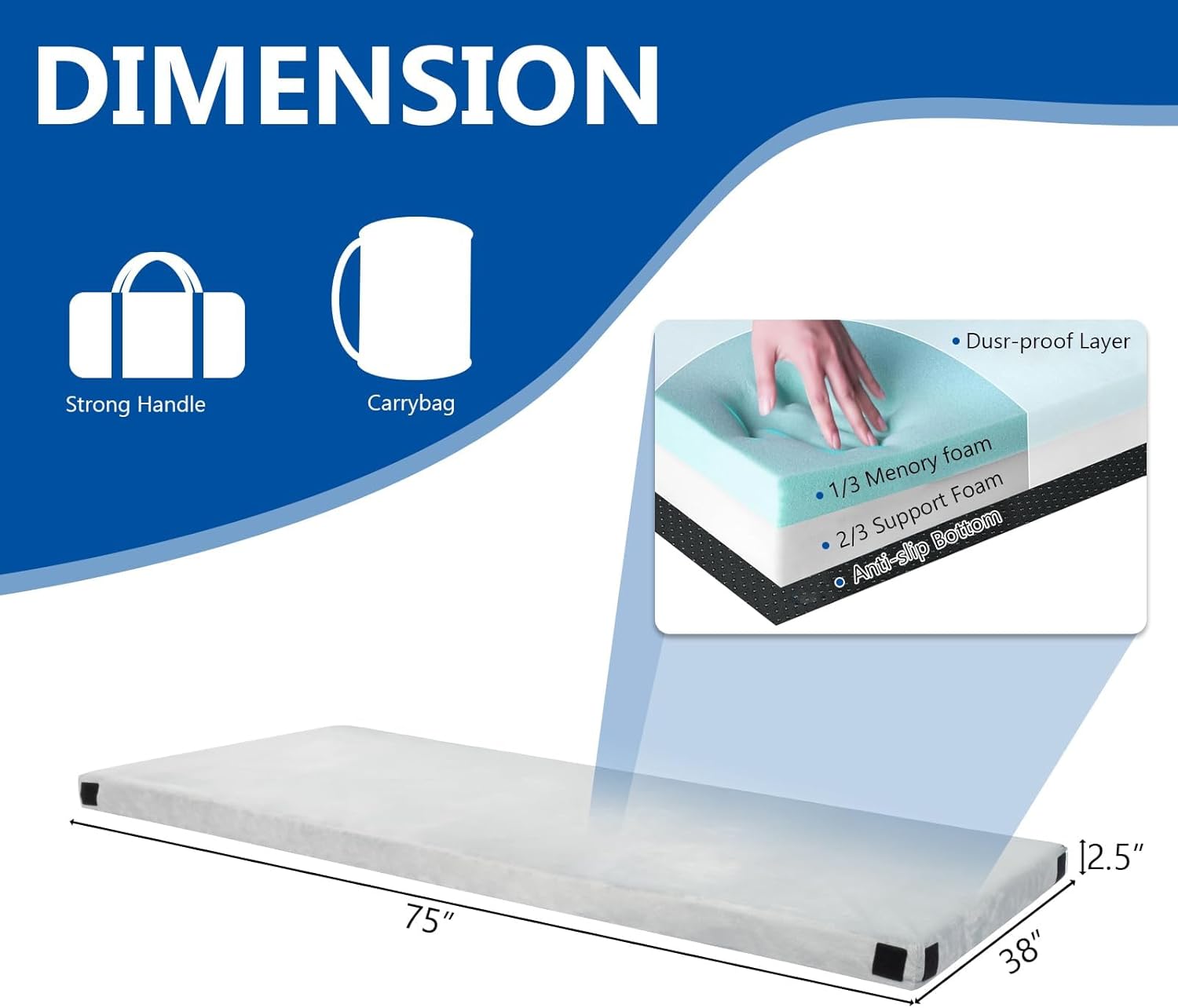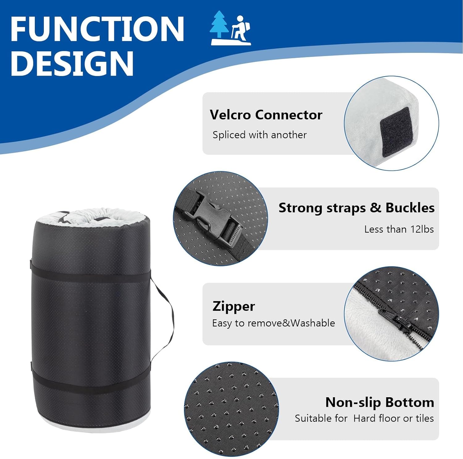 Ingenuity Craftsmanship: With a thickness of 2.5 inches, the foam sleeping mat features a two-layer design comprising 0.8″ gel-infused memory foam and 1.6″ high-density support foam, providing lasting comfort. The velvet cover of the camping bed for adults envelops you in warmth, while the waterproof, slip-resistant bottom enhances stability