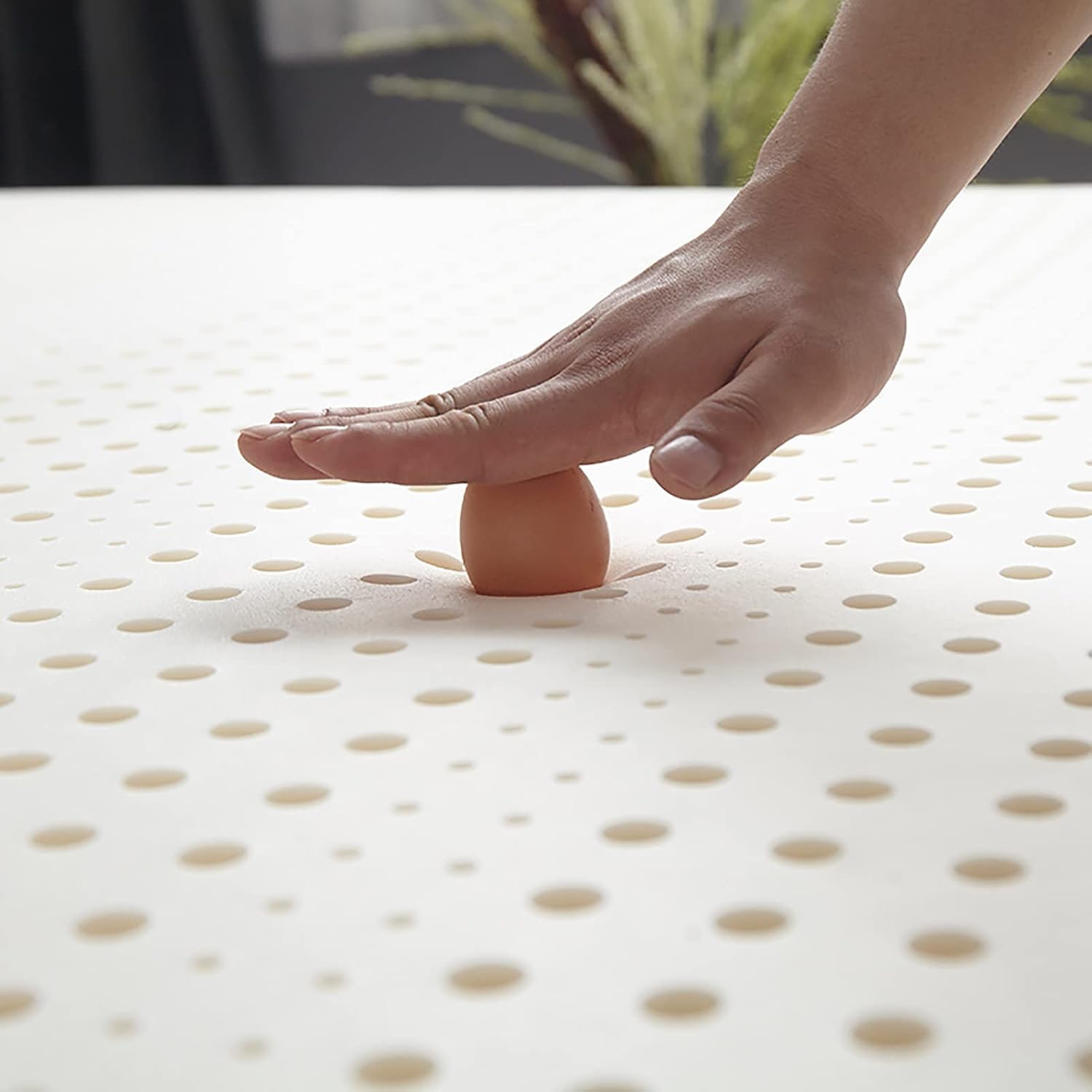 ★[Cooler restful sleep]: Natural latex mattress topper has thousands of honeycomb pores, which hold more air than other fibers. These holes can discharge the residual heat and moisture from the body. Natural latex mattress topper can promote natural ventilation, provide the best natural air conditioning system, and keep the air in the mattress topper fresh And health. It can maintain a comfortable feeling every season. In summer, you can deeply experience its refreshing and comfortable feeling.