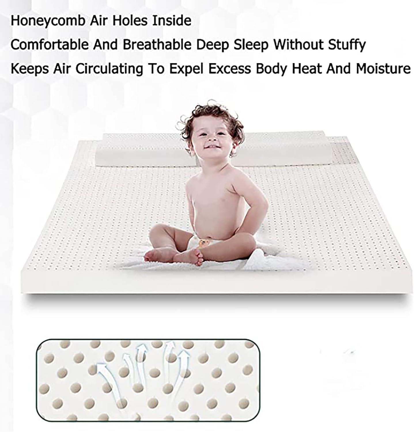 ★[Cooler restful sleep]: Natural latex mattress topper has thousands of honeycomb pores, which hold more air than other fibers. These holes can discharge the residual heat and moisture from the body. Natural latex mattress topper can promote natural ventilation, provide the best natural air conditioning system, and keep the air in the mattress topper fresh And health.