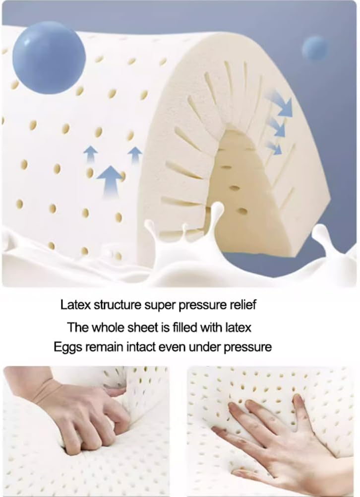 The soft Q-elastic material is sourced from nature, comfortable and breathable, effectively reducing spinal pressure. Latex structure super pressure relief