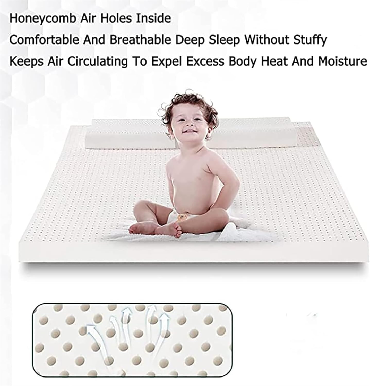 – ❄ **Cool and Restful Sleep**: The top layer of the Natural Latex Mattress Topper has thousands of honeycomb pores that hold more air than other fibers. These holes allow excess heat and moisture to escape from your body, promoting natural ventilation and providing the best natural air conditioning setup to keep the air inside the mattress fresh and healthy.