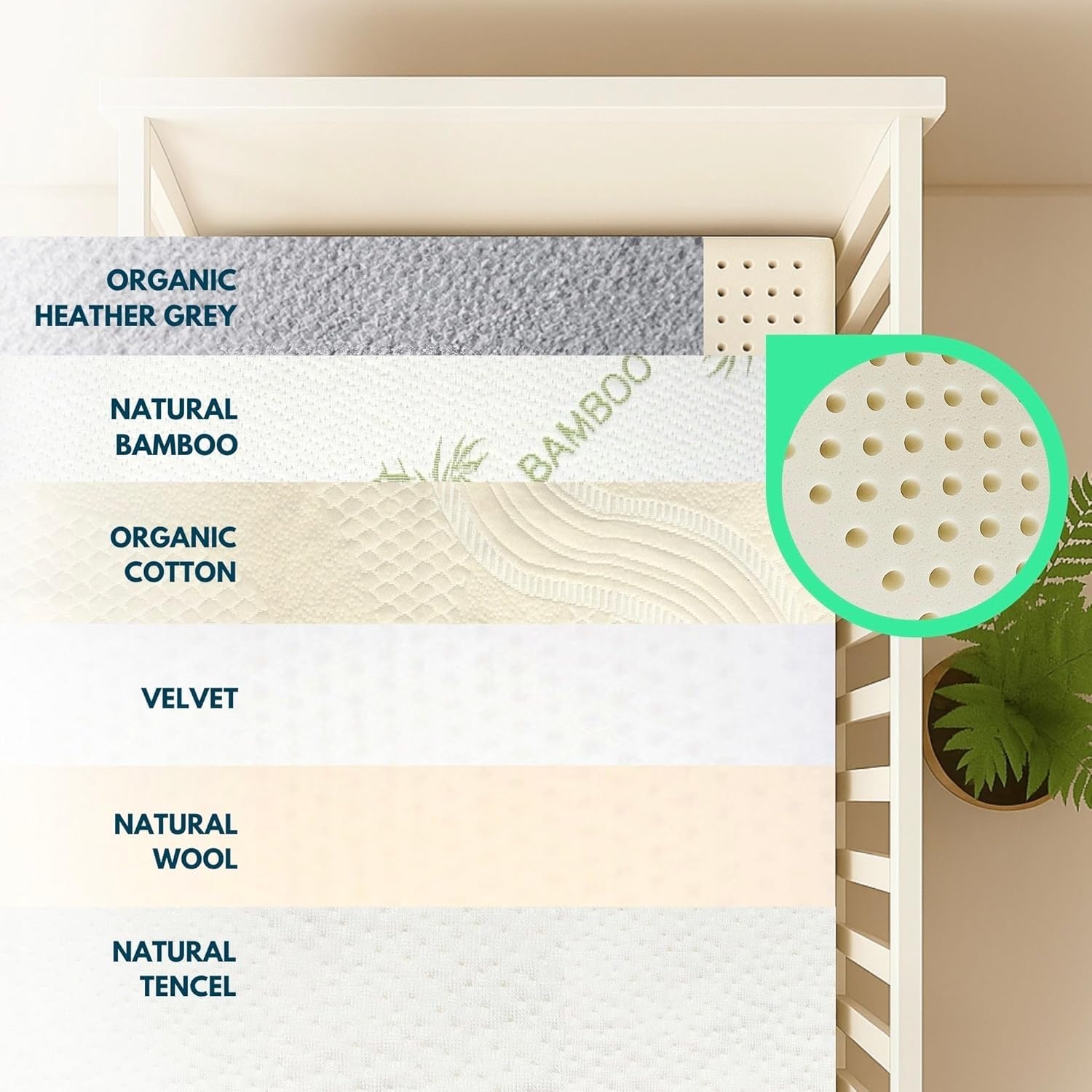 HYPOALLERGENIC AND SKIN SENSITIVE: Our Crib Latex mattress toppers naturally wick away dust, and other allergens, providing a healthier sleep environment for your little one. Free from synthetic materials and harmful materials perfect for a baby’s sensitive skin.