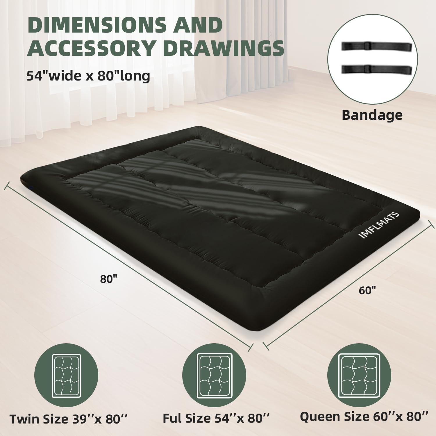 Generous size of 80 x 60 x 3 inches fits as a full antislip Japanese futon foldable tatami mat for adults, ideal as a floor mattress futon mattress or Japanese floor mattress option