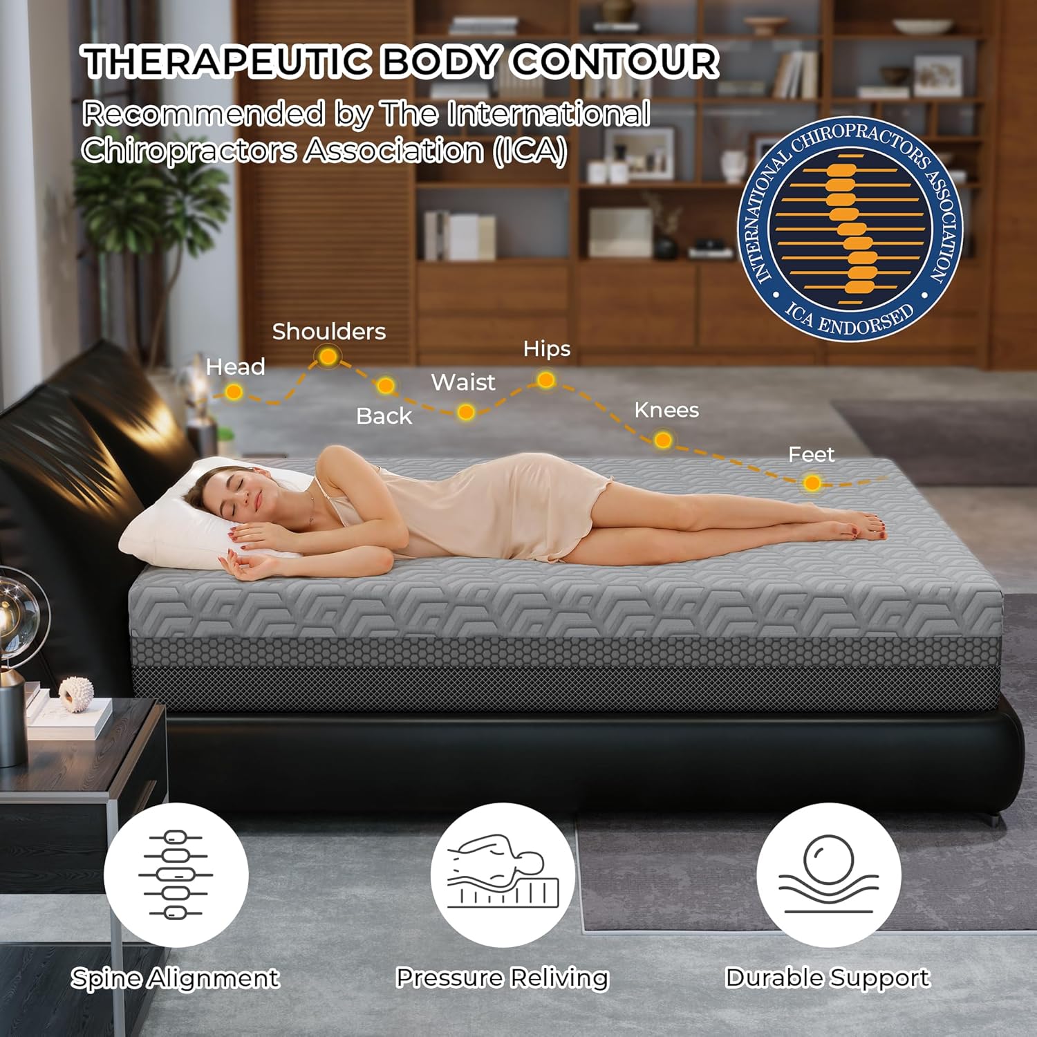 For 15 years, I was a innerspring mattress user. However, after purchasing this 12 Inch Memory Foam Mattress, I realized memory foam is a remarkable invention. It has truly revolutionized my sleep! The combination of memory foam and cooling gel provides the ideal balance of comfort and support. The memory foam conforms to my body, relieving pressure points in my shoulders and hips while providing excellent spinal alignment throughout the night. As a combination sleeper (side and back), I needed a versatile mattress, that looks luxurious and this one fits the bill perfectly.The cooling technology is a standout feature. I typically sleep hot, but the cooling gel keeps me comfortable even on warm nights. Additionally, the multi-layer design minimizes motion transfer, so my partner’s movements rarely disturb me, which has significantly improved my sleep quality. I now wake up feeling refreshed and less stiff. I am extremely satisfied with my purchase.