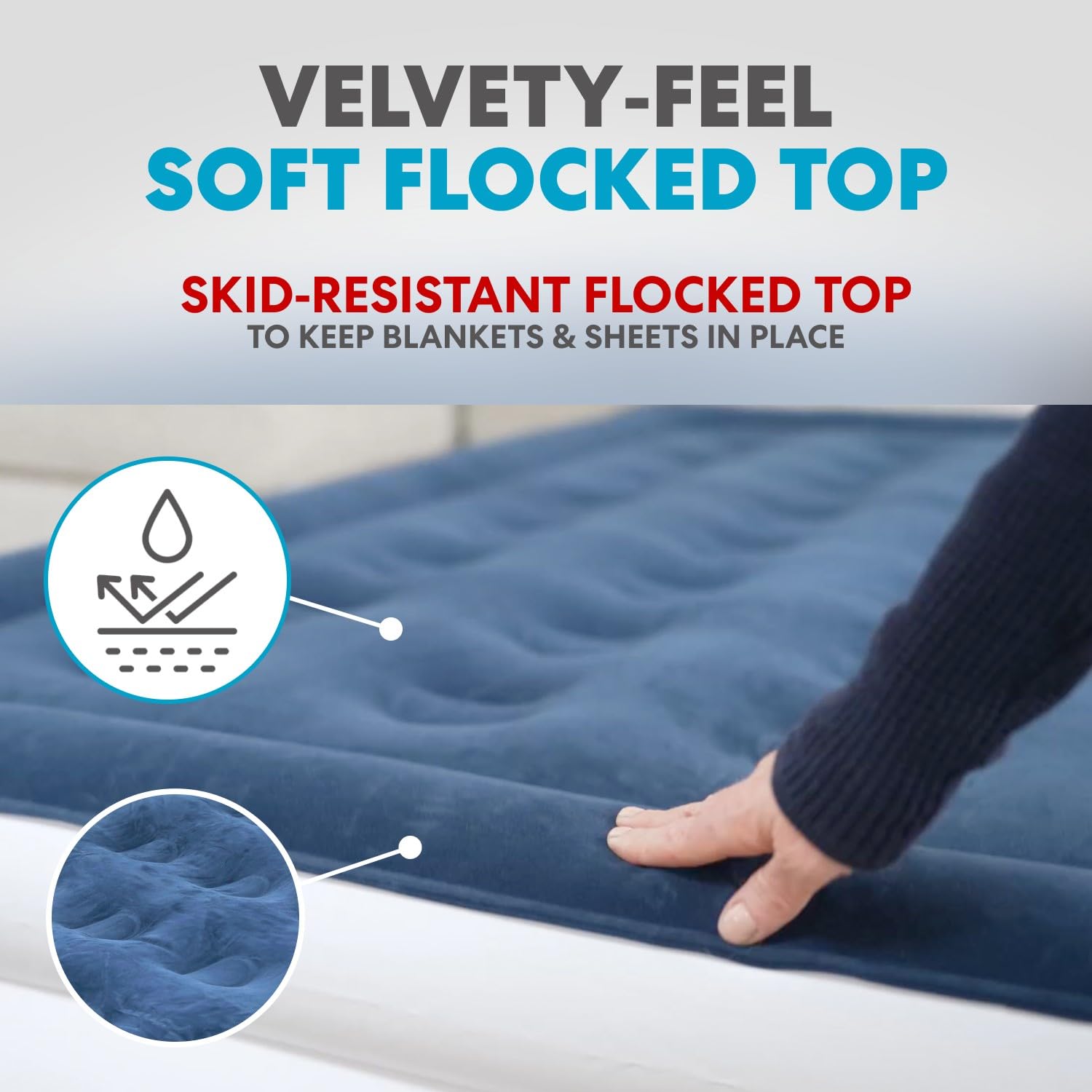EXTRA THICK, WATERPROOF FLOCKED TOP ensures a comfortable sleeping experience while multilayer, puncture-resistant Eco-Friendly PVC makes this mattress extra durable and long-lasting.