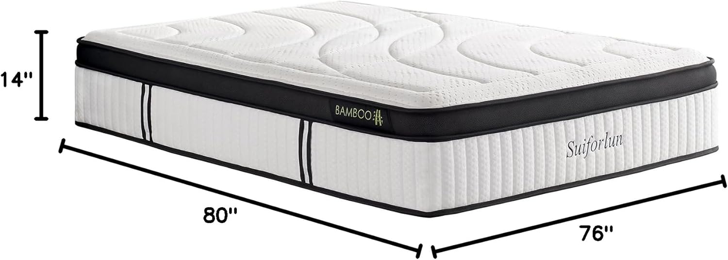 Balanced Support And Comfort: Suiforlun 14 inch hybrid mattress combines the firm support of individually encased coils with the body-conforming comfort of gel memory foam for an optimal sleep experience. Euro top provides additional cushion and pressure relief, which is beneficial for people with lower back pain.