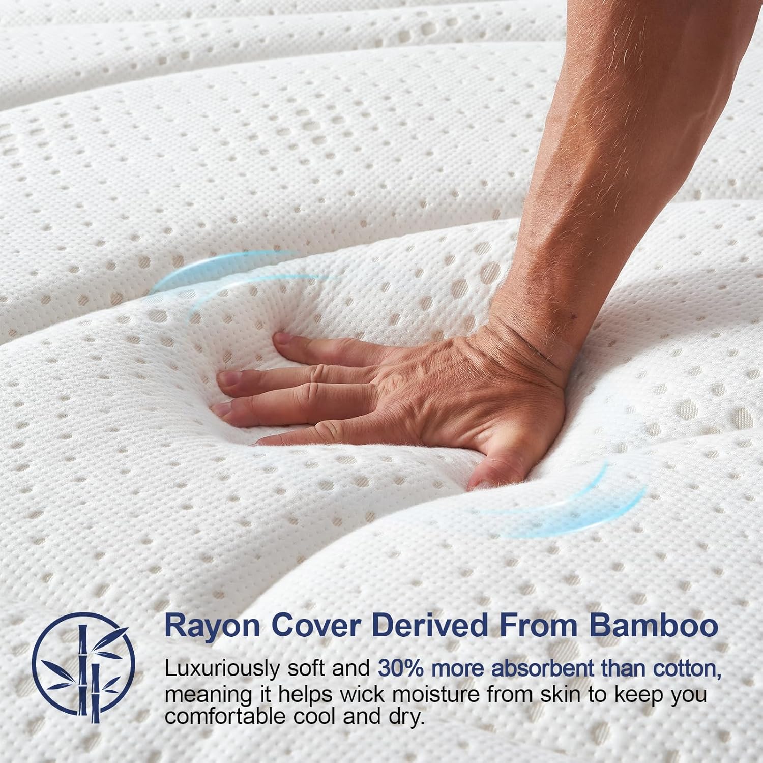 Bamboo Rayon Cover For Cooling Sleep: The Rayon fabric cover made from Bamboo is superior soft, smooth and breathable, creating a luxurious sleeping surface. 3D mesh fabric sides and coil base promote more airflow throughout the mattress, so heat don’t get trapped. You’ll enjoy a cool night’s sleep with less tossing and turning.