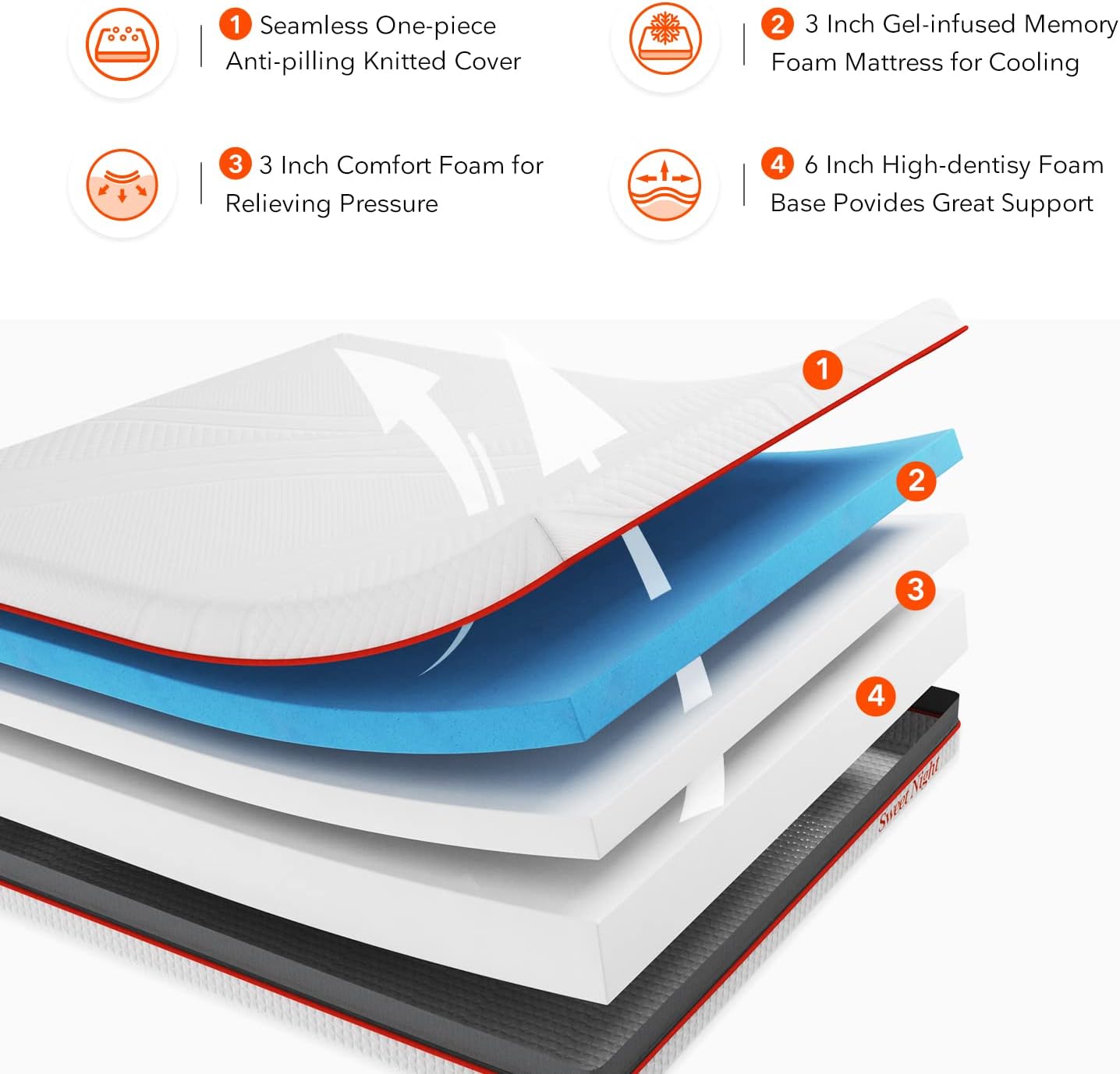 Gel-Infused Memory Foam: Experience cool, comfortable sleep with our gel-infused memory foam that absorbs and disperses body heat
