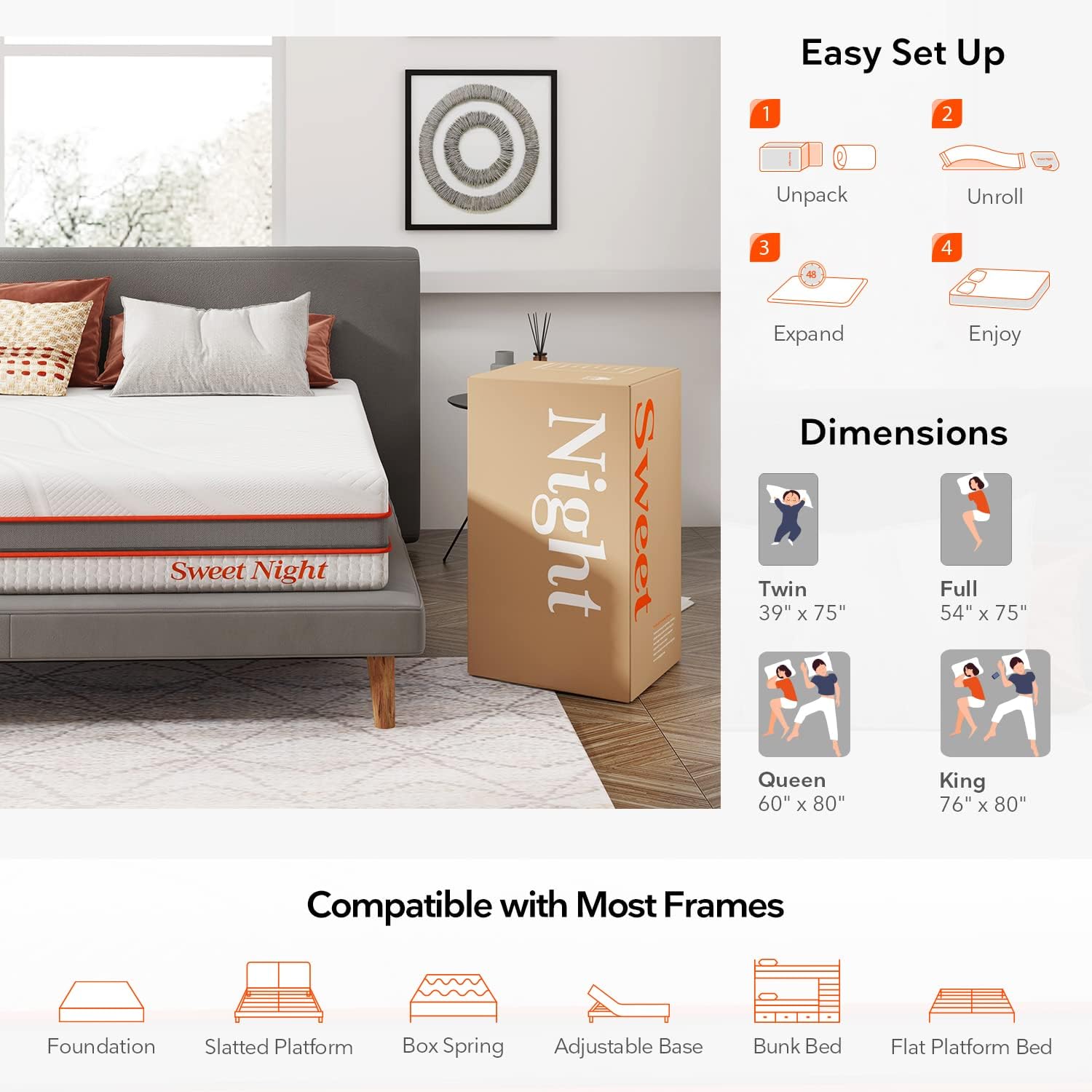 2.Expansion: Please give the mattress 48-72 hours to expand to its original shape.