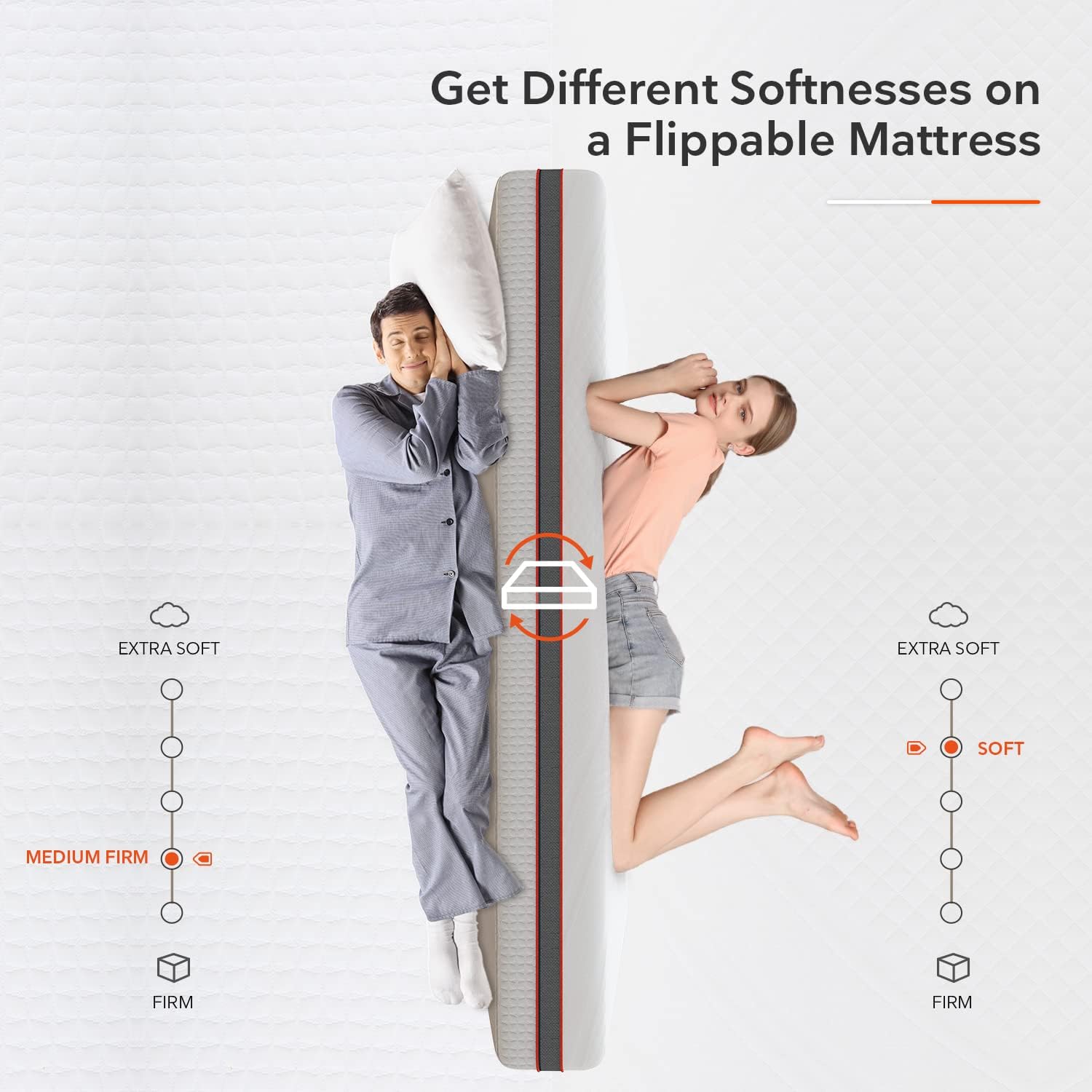Flippable Design: Enjoy two firmness options in one mattress, offering a softer side for pressure relief and a firmer side for added support