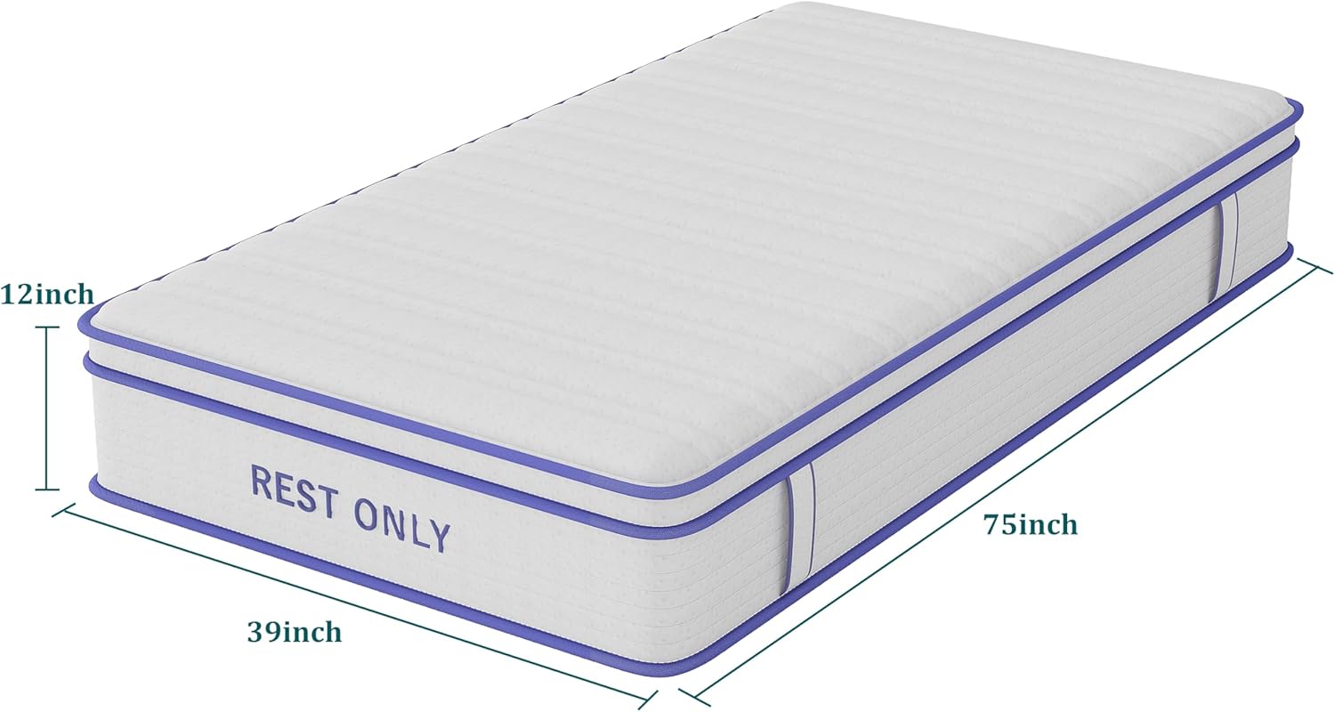 13 reviews for Twin Mattress 12 Inch, Rest Only Twin Size Hybrid Mattress in a Box with Pocket Spring, Medium Firm, Motion Isolation and Pressure Relieving, for Kid’s Room