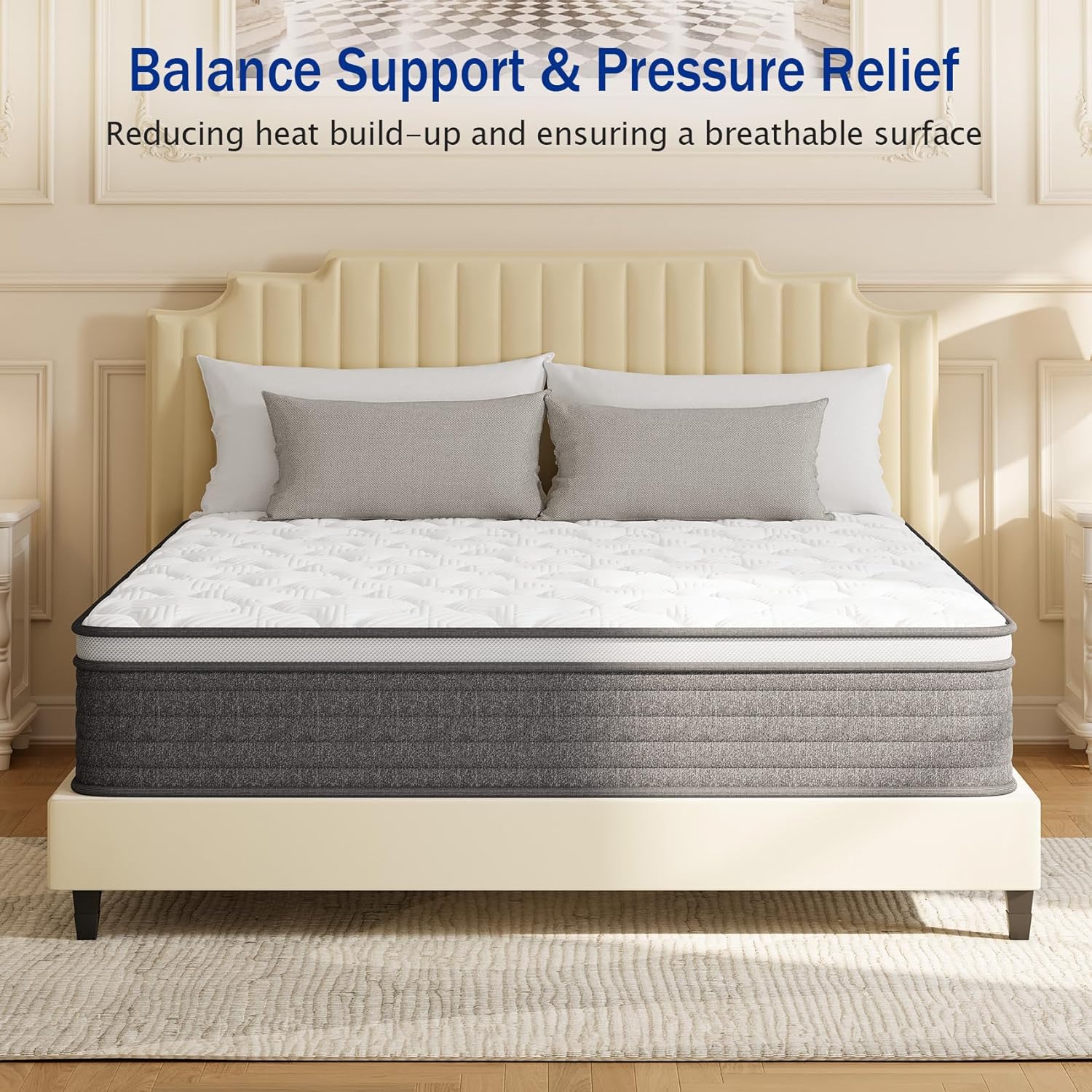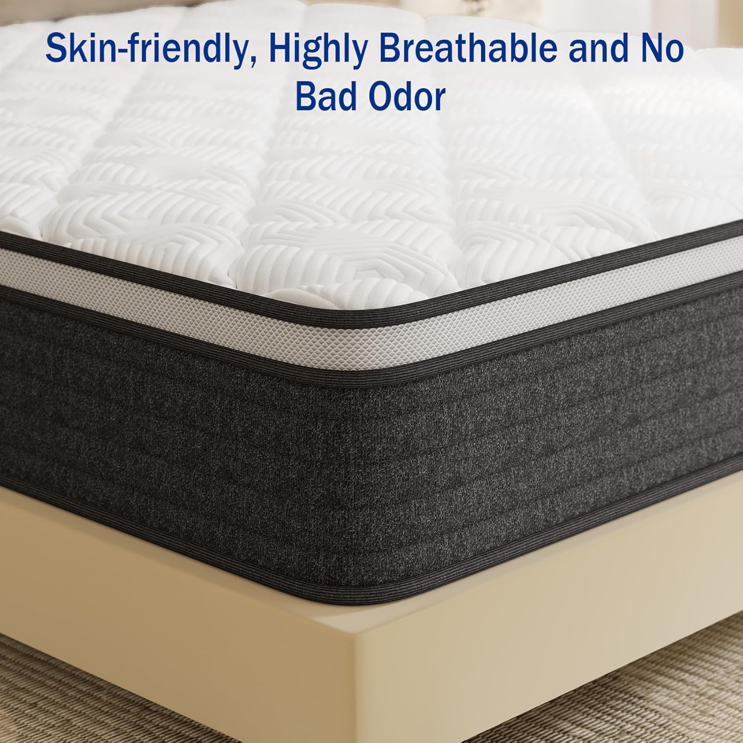 Perfect Balance of Softness & Firmness: This 14-inch twin size hybrid mattress offers a medium-firm feel, ideal for all sleep positions. The memory foam conforms to your body, while the coils provide responsive support for a balanced sleep experience