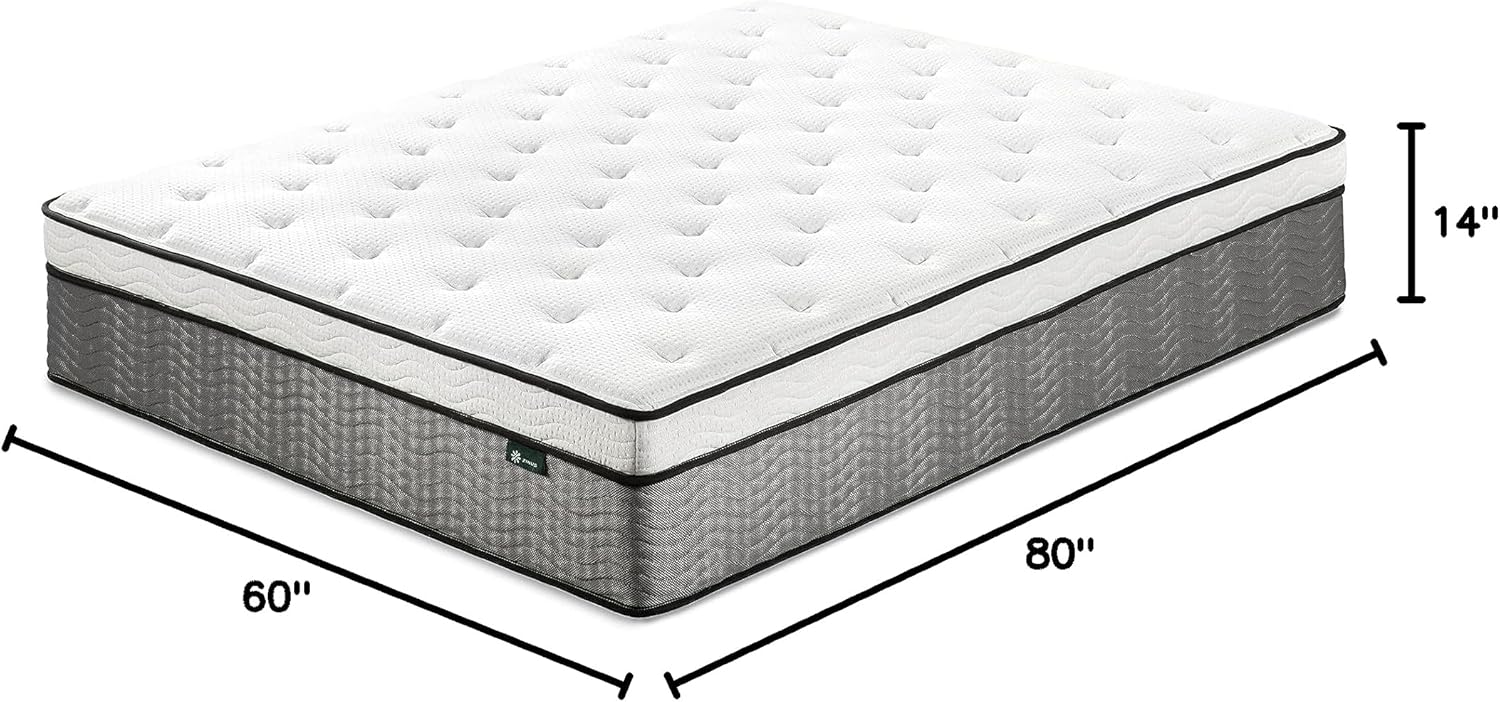 ZINUS 14 Inch Support Plus Pocket Spring Hybrid Mattress, Queen, Strong Coils for Durable Support, Pocket Innersprings for Motion Isolation, Mattress in A Box