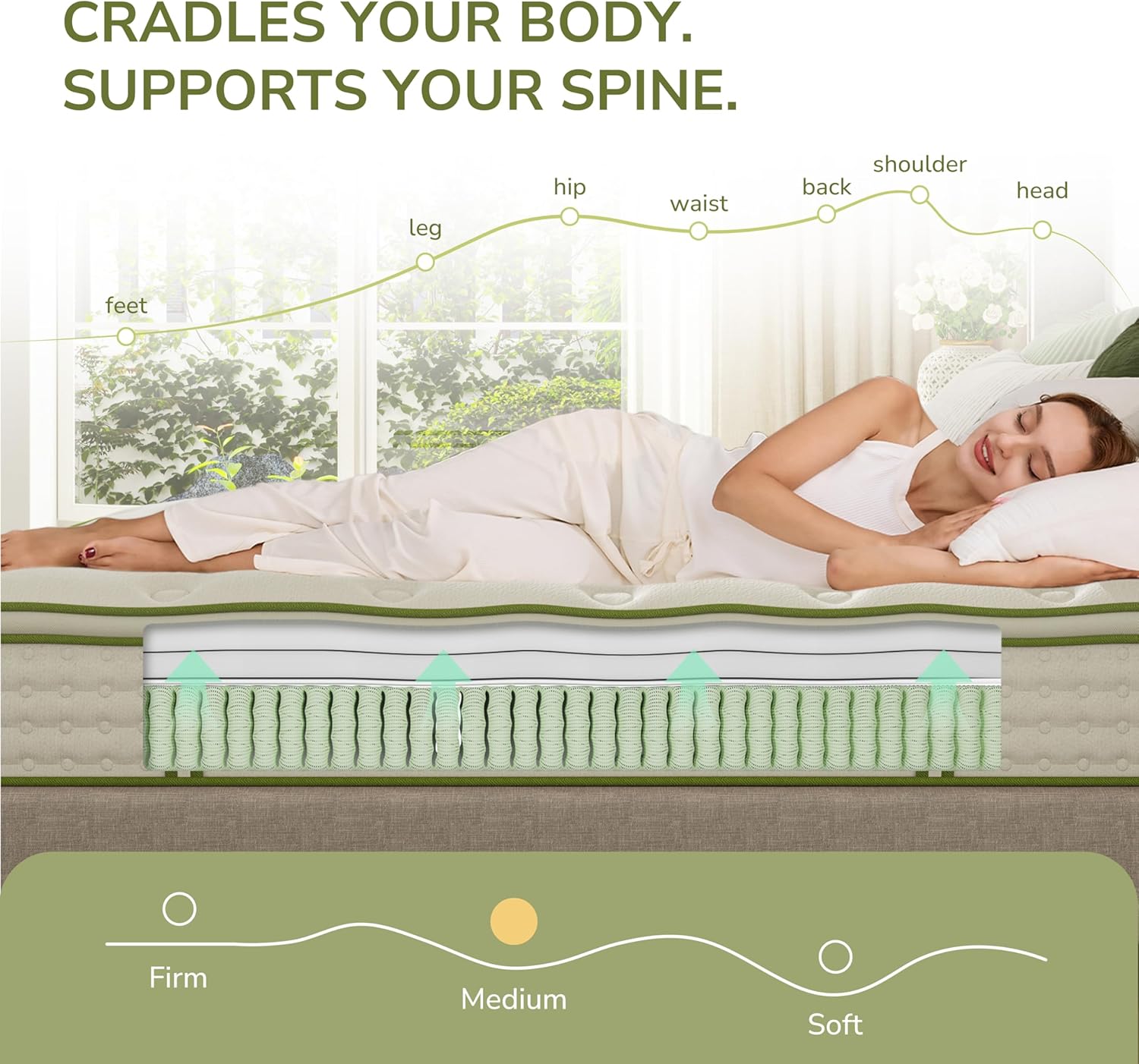 Supportive for Various Sleeping Positions—This medium firm mattress is designed to offer unparalleled support for individuals of all sizes with its unique combination of high-density foam and sturdy pocket springs. The hybrid mattress easily adjusts to different body shapes and sleeping styles, ensuring a comfortable night’s sleep for everyone.