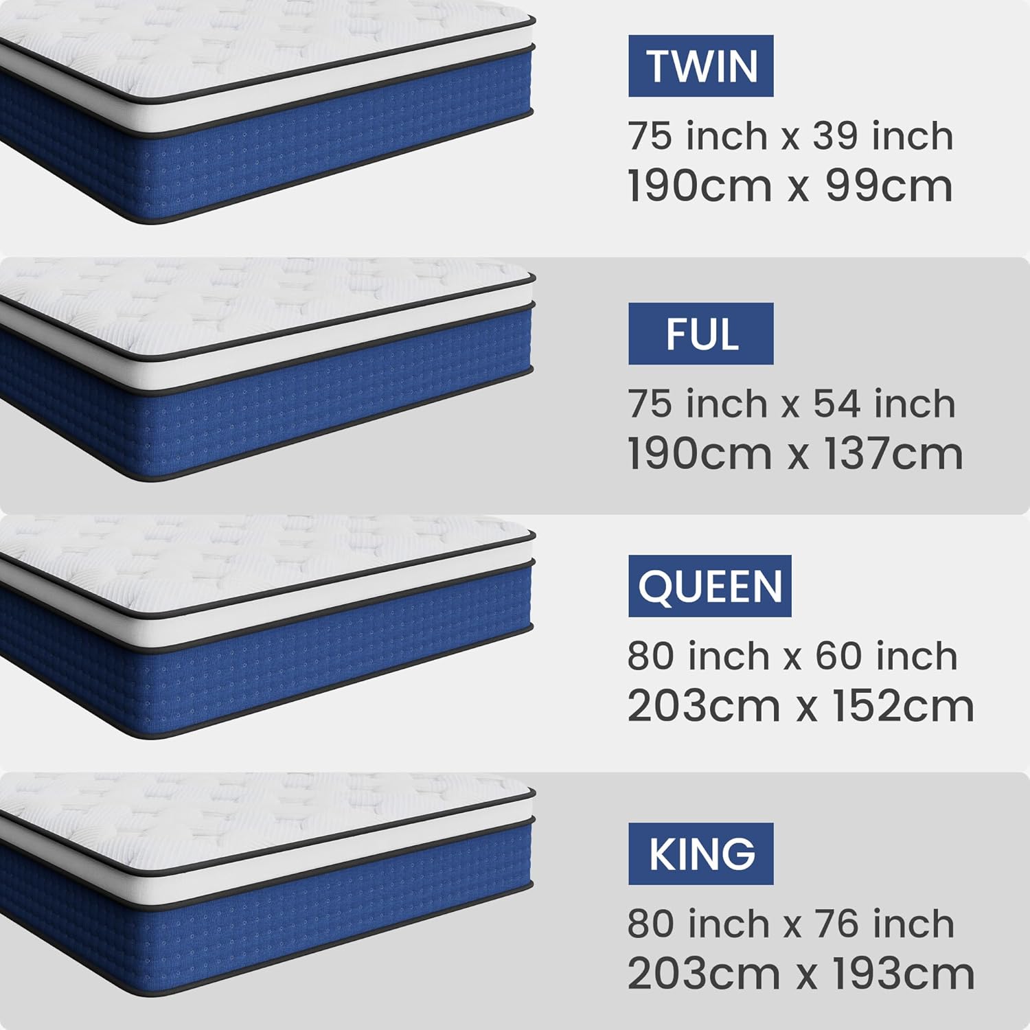 Unbeatable Comfort & Support Suitable for All Body Shapes and Sleeping Positions: The 12 inch queen size hybrid mattress combines premium memory foam with individually wrapped coils for optimal pressure relief and spinal alignment. Perfect for back, side, and stomach sleepers, it ensures a restful night’s sleep. Adaptive foundation of pocket springs and orthopedic foam provides additional back and lumbar support where you need it most