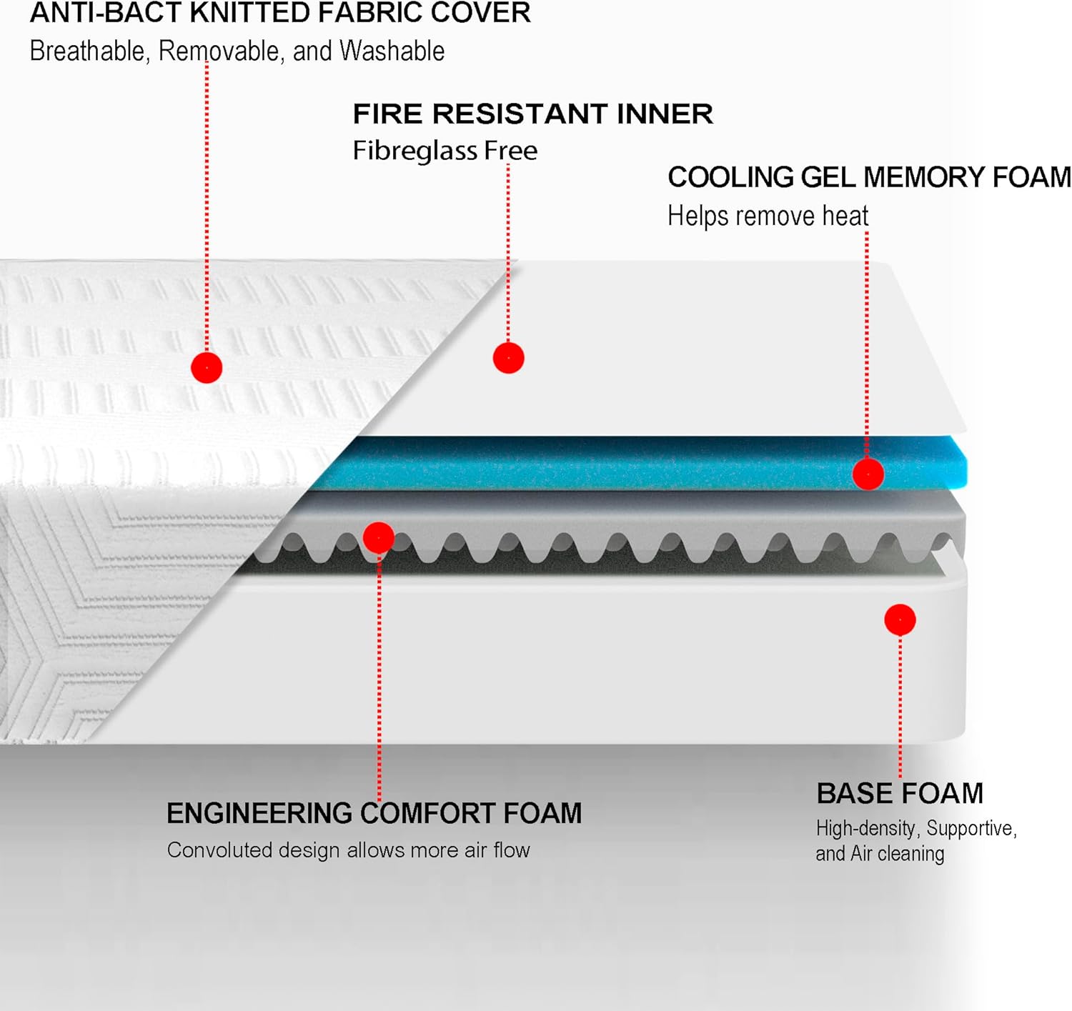 【GLASSFIBER FREE】-No glassfiber inside mattresses. BreezeRest products always upgrades quality requirements when developing products. As usual, BreezeRest products are made with safe substances.All foam are tested by US lab and have certified by CERTIPUR US to ensure its’safety, quality and performance.
