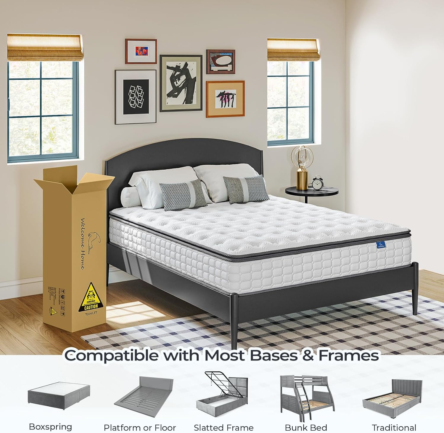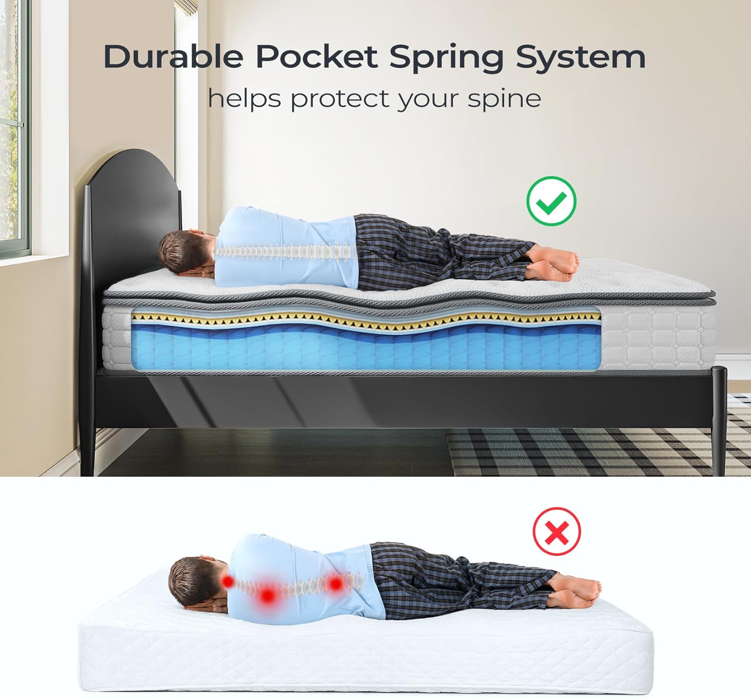 【Ultra Quite】- Due to the pocket spring + multilayer foams design, this mattress can effectively absorb noise and vibration; No waken up caused by tossing and turning, no disturbing companion