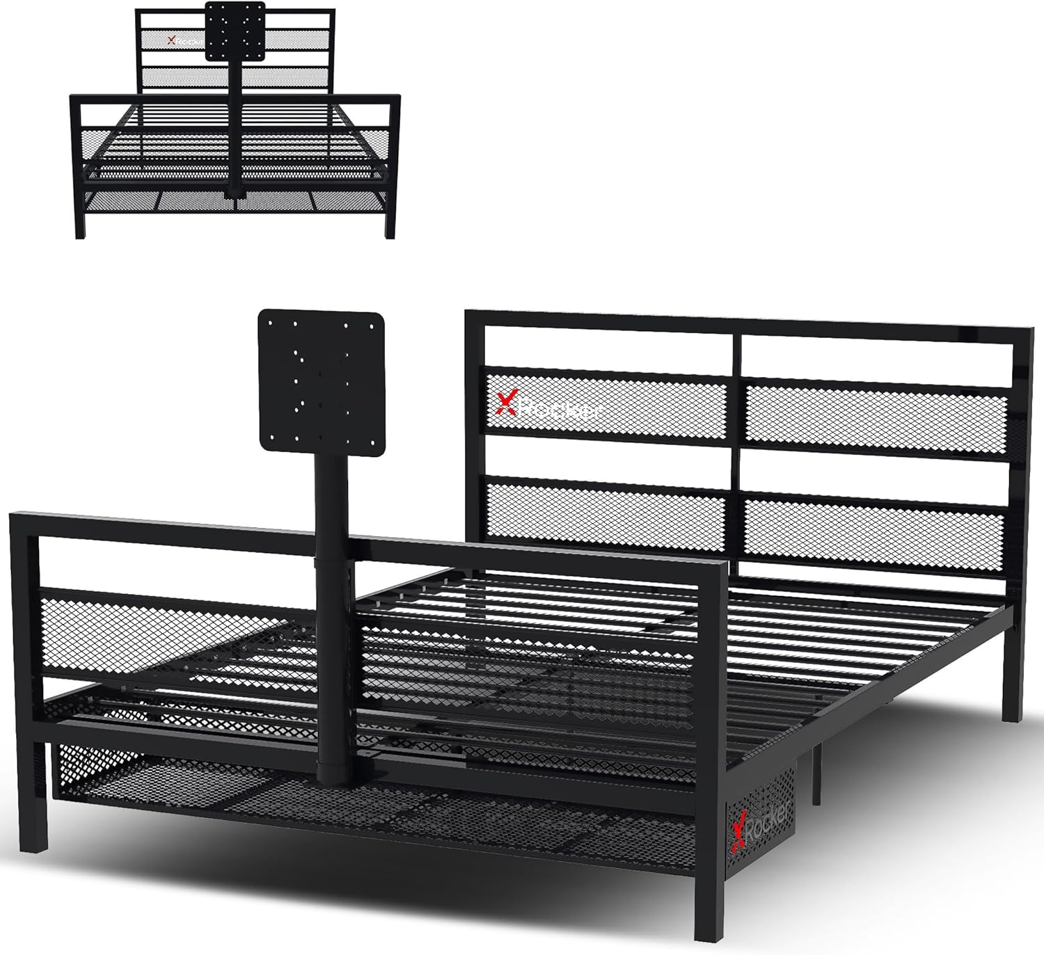 X Rocker Basecamp Full Size Gaming Bed, Rotating TV Mount with Vented Console Storage, Metal Mesh Frame with Slats, Amazon Exclusive, Black