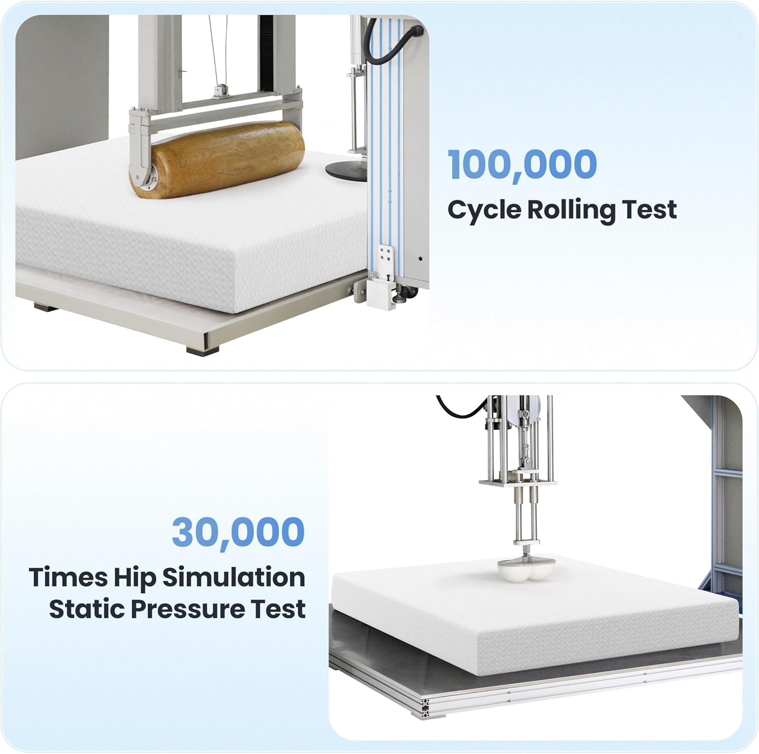 Body-Conforming Comfort: This foam mattress adopts a plush memory foam layer that fills gaps around your body, cradles pressure points like shoulders and hips, and promotes better spinal alignment. Passed the 100,000-cycle rolling test and 30,000-time hip simulation static pressure test, it offers a medium-firm feel